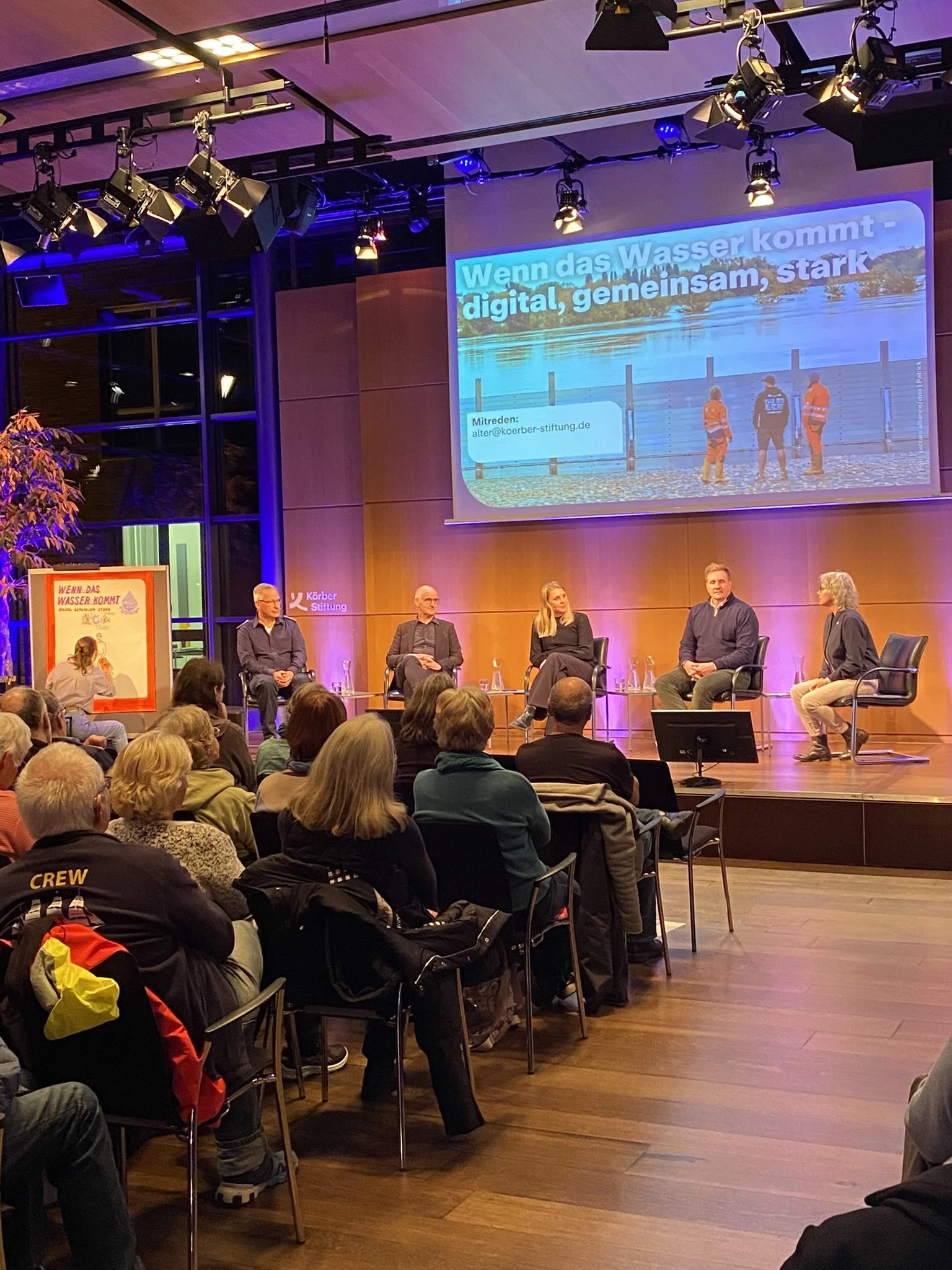 Auf der Podiumsdiskussion „Wenn das Wasser kommt“ im Rahmen der Hamburger Horizonte im Körber-Forum, wurde diskutiert, wie digitale Werkzeuge und Strukturen im Katastrophenfall helfen können, Organisationen und Behörden besser miteinander zu vernetzen und Ehrenamtliche zu mobilisieren - über Generationen hinweg.