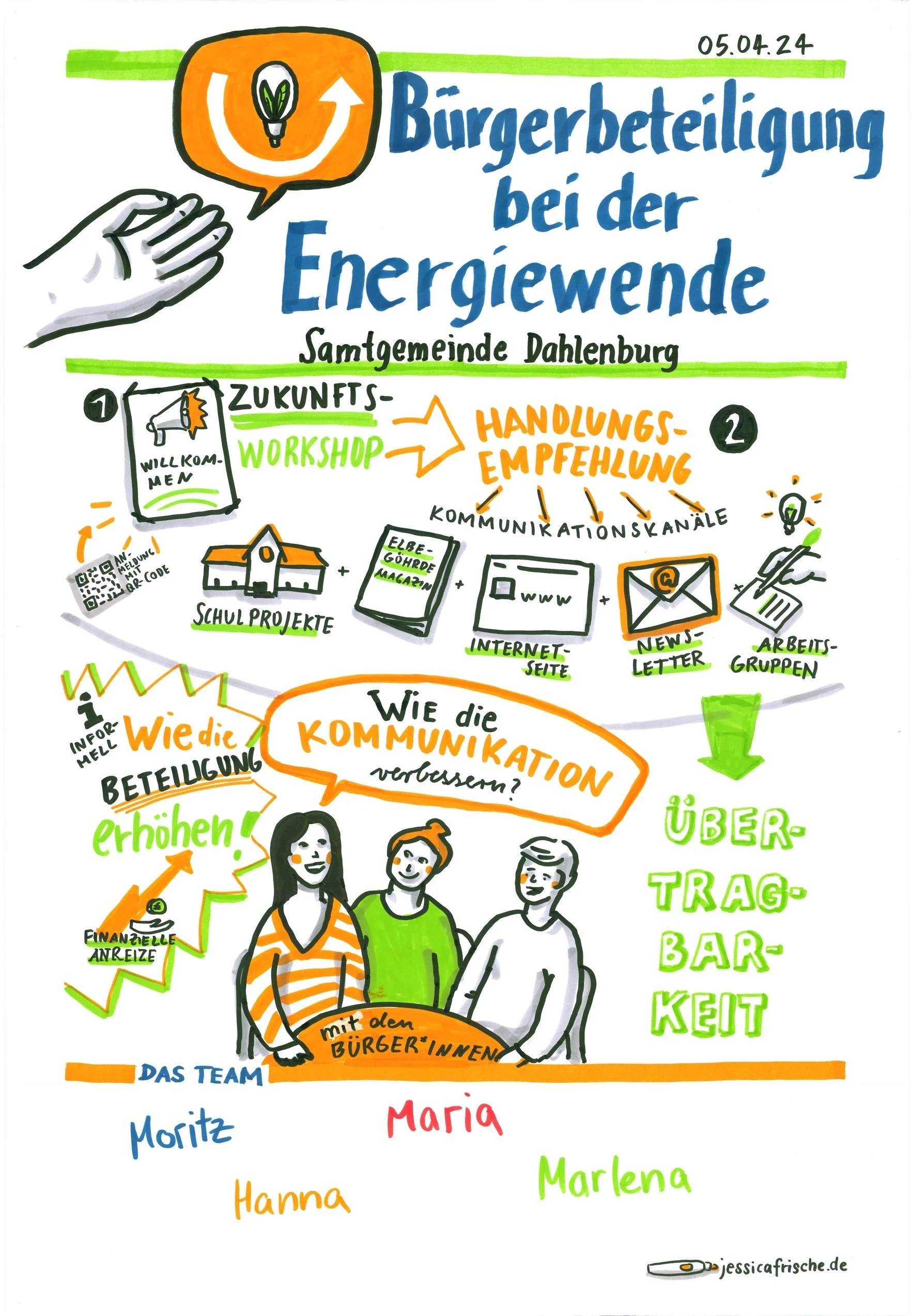 Client: Hanna Gilcher, Koordinatorin Bio.re-na I Teilprojekt "Nachhaltige Kommunalentwicklung“ I Landkreis Lüneburg I Graphic Recording analog, 70x100cm